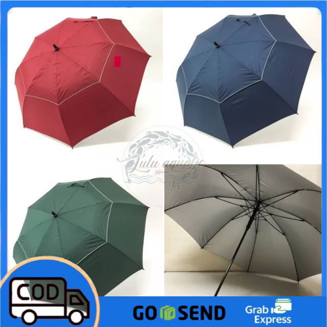 Payung susun dua, lebih tahan angin dari pada payung pada umumnya. Kerangka payung terbuat dari bahan fiber, lebih kokoh dan lentur sehingga tidak mudah patah.Buka otomatis dengan menekan tombol. Tutup manual.Bagian dalam payung berlapis silver antiUV, sehingga tidak panas saat digunakan dibawah terik matahari.Ada sarung.Tersedia dalam 6 pilihan warna : biru, hijau, navy, merah, maroon, hitam, dan silver.Panjang payung 101cmDiameter payung 118-