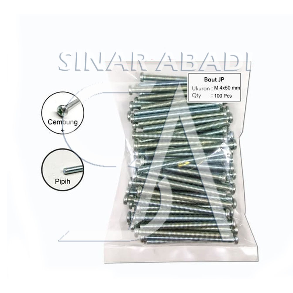 HARGA DIJAMIN TERMURAH...HARGA PER 100 PCS, UNTUK UKURAN M4 x 50 MM.FOTO DIAMBIL DARI BARANG ASLI UNTUK PERBANDINGAN BARANG DENGAN UKURAN LAINNYA.TIDAK MENERIMA KOMPLAIN APABILA JUMLAH BARANG YANG DITERIMA KURANG/LEBIH DARI 100 PCS, HUMAN ERROR HARAP DIMA