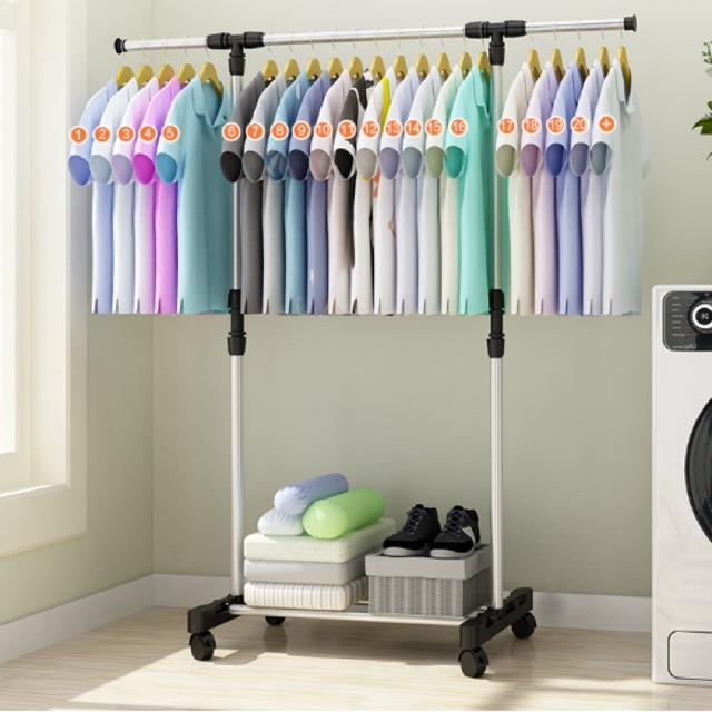 Name: 🍭🍭🍭rak Gantung Serbaguna / 55x80x155 Expandable Stand Hanger Stainless Single Rak 4 Roda