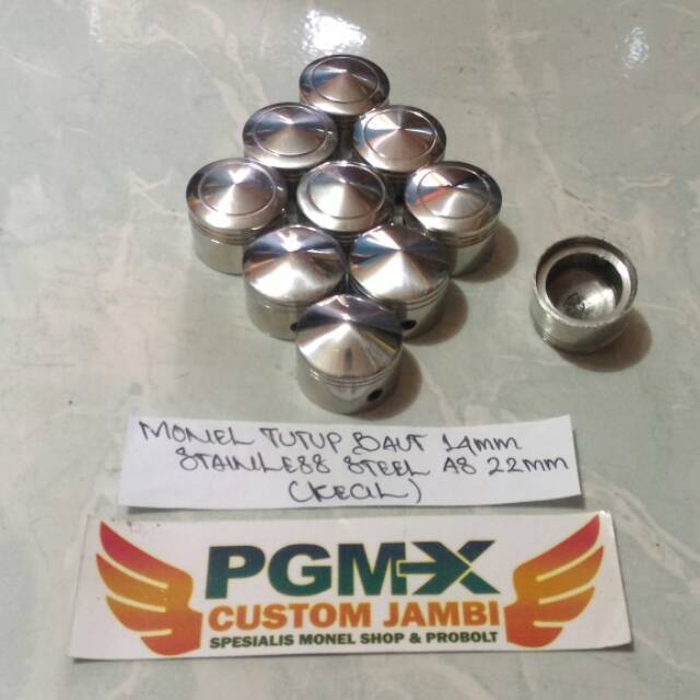"Ready StockTanyakan Stock Terlebih dahulu jika ingin memesan barang yang anda inginkan, Budayakan Chat agar tidak terjadi kesalahpahaman.Monel Baut Ukuran 14mm Ukuran As 22mm atau Model Kecil Bahan Stainless Steel Murni (bukan Besi yang di Croom) dengan proses CNC yang membuat hasil menjadi maksimal dan tahan lama, sudah dilakukan pengujian dan pemasangan pada kendaraan konsumen, dan pribadi.Untuk Menutupi baut-baut anda agar melundungi dari Karat, Korosi dan Juga mempercantik Penampilan Motor anda. Berani beda itu lebih baik.Selamat Berbelanja dilapak kami semoga anda senang dan menemukan barang yang anda inginkan. Terima kasih.NB :Harga Sangatlah Menentukan Sebuah Kualitas Dari Suatu Produk Yang Akan Anda Butuhkan Serta Dapatkan.Buktikanlah Bahwa Kualitad Barang Yang Kami Jual Adalah Produk Yang Terbaik Di antara Yang Terbaik.Detail Produk Yang Paling Baik Dan Dibuat Dengan Material Pilihan Yang Paling Baik.Tentunya Tidak Mudah Luntur, Patah, Berkarat Dan Rusak.Hanya Konsumen Yang Mengerti Barang Yang Tidak Pernah Mempertanyakan Perihal Kualitas Ba
