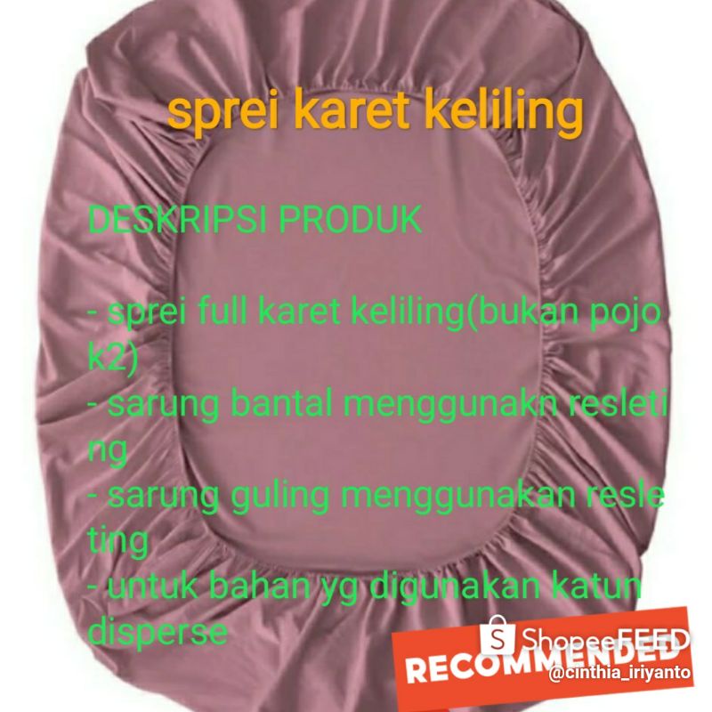 Selamat datang di lapak rumah prod sprei(sprei anti geser/full karet keliling)Kenapa menyebutnya sprei anti geserSpreinya anti geser krn disekeliling ful karet,sarung bntal dan guling menggunakan resleting dan diobras sehingga bntal dan guling tidak mudah lepas.dan diproduksi sendiri/homemade,SPREINYA berbeda dengan sprei pda umumnya yg karetnya hnya ada dipojok2.produk yg kami buat full karet keliling sehingga tidak mudah lepas dr kasur. Bahan katun disperse,halus,lembut,dan adem saat dipakai. *UNTUK hrga diatas hanya spreinya saja tanpa sarung bantal dan gulingCARA ORDER* Mohon seblum order chat/atau tanyakan motif terlebih dahulu yg tersedia..krn motif selalu berganti yg lebih baru* tulis CODE yg ada pojok kanan,untuk memudahkan kami dlam memproses order anda.Terima kasih & happy shooping