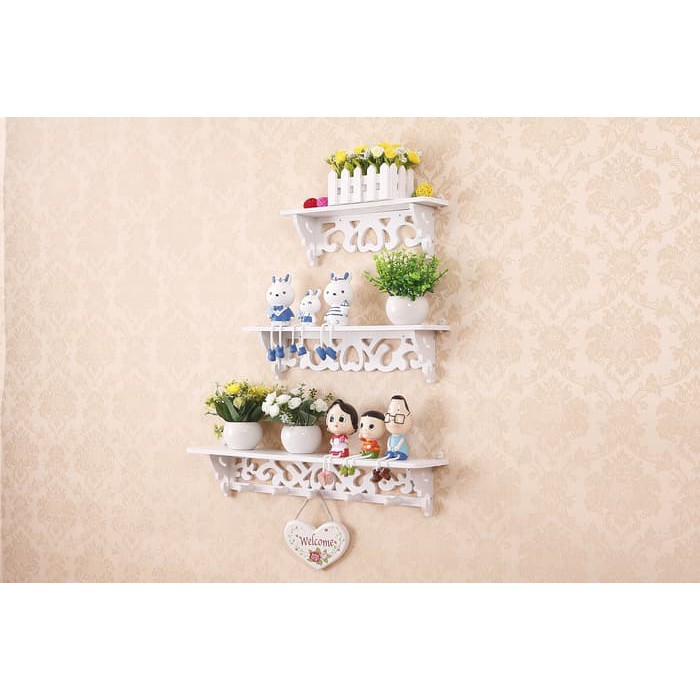 Selamat Datang di Toko Kami Rak dinding vintage 1set isi 3pcs (New ada 5 hook gantunganReady warnaputih pinkCANTUMKAN PERMINTAAN WARNA PADA CATATAN UNTUK PENJUAL YA , CATATAN UNTUK PENJUAL KOSONG=KIRIM RANDOM.TIDAK TERMASUK PATUNG PAJANGANPanduan pemasangan ada di foko ke dua Size produk ada pada foto produk nya ya Material : WPCTerima Kasih Telah berkunjung di toko