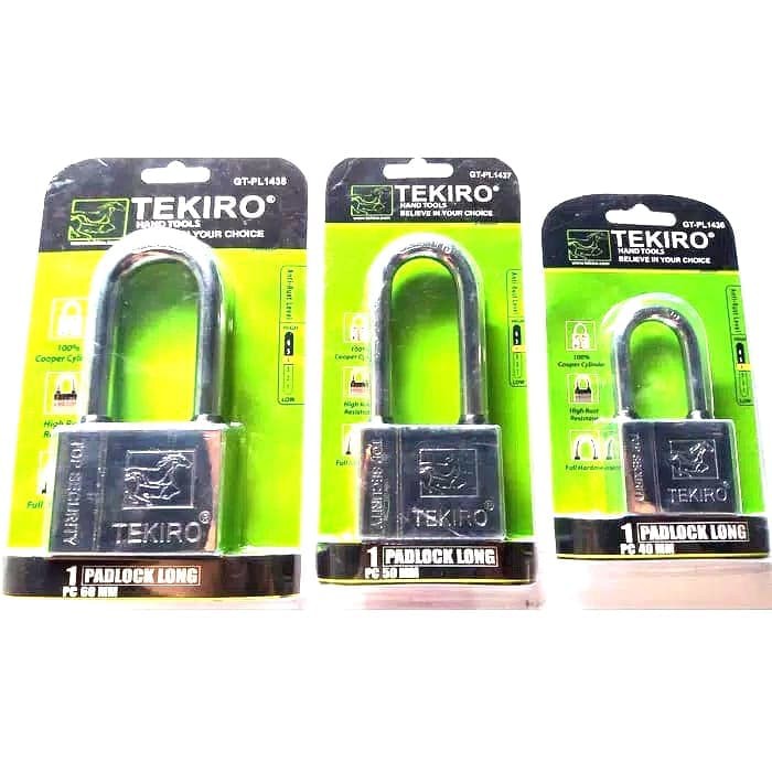 Informasi ProdukNama : Kunci Gembok Leher Panjang - Padlock Long Square TypeMerk : TekiroWarna: Chrome / SilverUkuran: 50 mmNo. Part Produsen: GT-PL1437Spesifikasi:- Gembok pengaman kualitas tinggi- Material chrome vanadium- Cylinder dan pin material 100% cooper- High secure lock- Carbon steel body- Satin finish- High rust resistant- Full hardened- Dilengkapi 4 pcs anak kunciJapanese Industrial Standard (JIS)Tekiro Corporation,