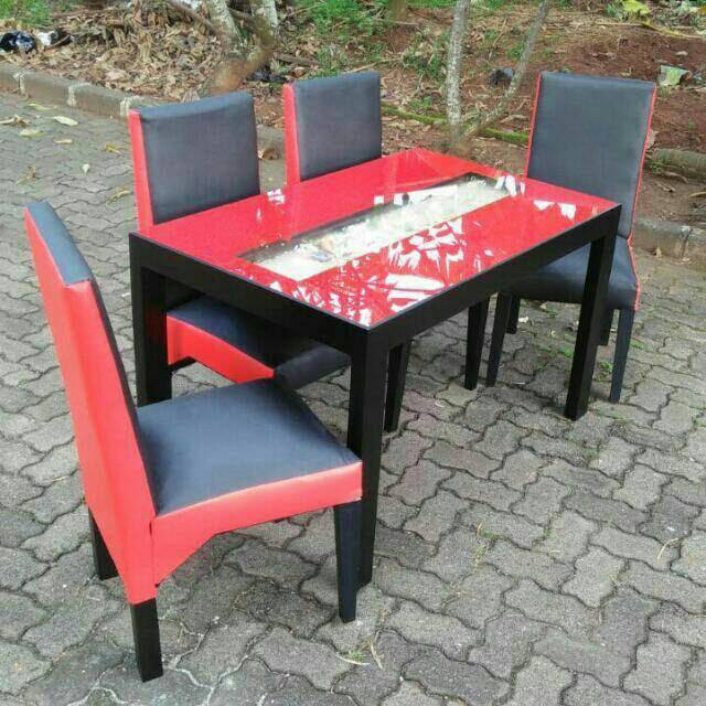 Meja makan yang trendy dan modern ini sangat cocok untuk mengisi ruang makan anda. Modelnya yang simple dan minimalis membuat meja makan ini sangat mudah diatur tata letak posisinya di ruang makan anda. Bahan meja makan ini terbuat dari kayu yang telah diopen / direndam obat anti rayap sehingga tahan terhadap rayap, air & jamur.Kursi meja makan ini terbuat dari kayu yang dibungkus bahan Oscar sehingga lebih nyaman dan juga lebih awet ketahanannya. Bagian atas meja makan ini ditutup oleh kaca granit yang mempunyai ketebalan 6mm agar tahan terhadap keretakan yang biasa timbul pada kaca apabila kaca mengalami benturan benda keras. Selain itu meja makan ini dilengkapi dengan aksesoris kerang dan pasir laut agar terlihat lebih asri dan lebih indah. Tersedia beberapa pilihan motif warna (Di slide saja Gambarnya).Meja makan ini tersedia 2 model pilihan antara lain : *Meja Makan + 4 Kursi (120 x 70 x 75).*Meja Makan + 6 Kursi.(155 x 90 x 75) . Untuk memilih model "KLIK" PILIH VARIASI.*Harga diatas belum termasuk ongk