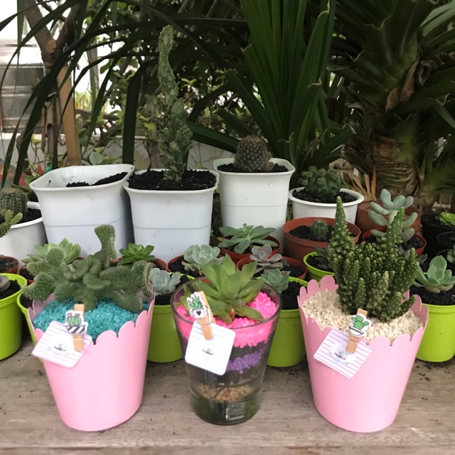 Tanaman kaktus dan suculent hias pot pink.Ukuran small.Diameter 9cm , tinggi 25-30cm.Pot bahan kaleng coating enamel pink.Sangat cantik dan unik sebagai kado valentine, hampers, souvenir wedding, dll.Preorder 2-3 hariPengiriman hanya bisa dengan grab atau gojek.Tanaman ini dapat hidup di dalam ruangan tanpa sinar matahari lama.Sangat cantik sebagai hiasan meja, kamar, dll.Perawatan :Siram tanahnya saja setiap 2-3 minggu sekali.Air sedikit saja( kira kira 2-3 sendok makan ) , hanya basahi tanahnya saja, jangan siram tanamannya.Jangan terlalu banyak menyiram air, tanaman bisa busuk.Gunakan botol saos ujung lancip untuk menyiram.Taruh tanaman di tempat yg teduh, jangan terkena sinar matahari langsung.Bila di dalam ruangan , keluarkan setiap 1 bulan sekali.Happy nurturing. Menerima custom made sesuai tema dan acara.Warna pasir : merah, biru, putih, hijau, kuning, dllBundle.joy81#souvenirkaktus #souvenirsuculents #kadounik #kadocustommade #valentinegifts #gifts #kaktus #sucu